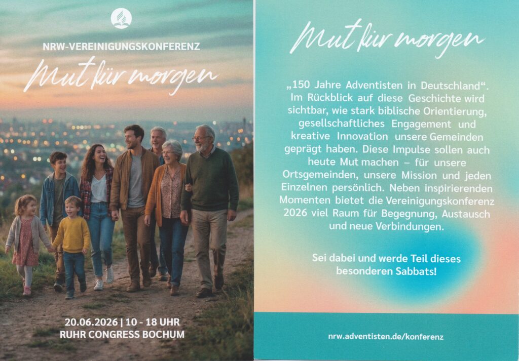 Veranstaltungen & Angebote – Bibelkreise – Hauskreis – Gebetskreis – Sport – Termine SG2026Herunterladen Alle weiteren Infos und was Dich erwartet findest du unter: https://nrw.adventisten.de/konferenz